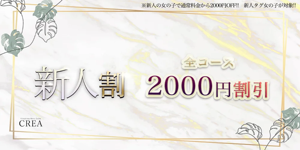 - 🎉新人多数入店キャンペーン🎉 ただいま新人多数入店につき、通常料金から2,000円OFF! ご利用の際は、**必ずご予約時に「新人割引希望」とお伝えください。 この機会にぜひご利用ください✨ ※他割引との併用不可 ※まだお会いしたことのない女の子のご指名に限ります